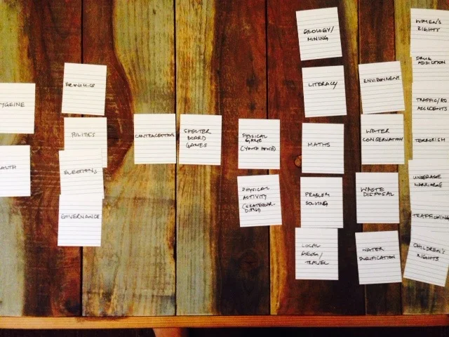 Character sketches were developed by a local artist in Dubai to ensure that aesthetics were in line with local tastes. They were fine tuned based on my feedback and user testing. For example, as we found more people were amused by the negative character, the hero character was exaggerated to encourage players to win. Either way, there was "failure through iteration" - in other words, learning even as a player gets it wrong and repeats the process.